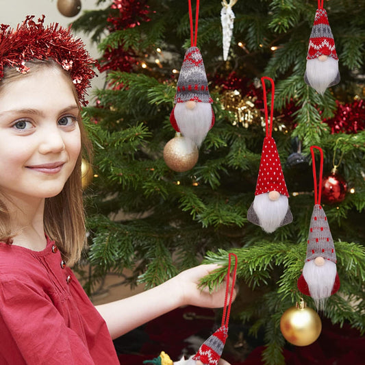 Set of 8 Christmas Gnome Hanging Ornaments, Handmade Swedish Plush Santa and Elf Decorations for Xmas Tree