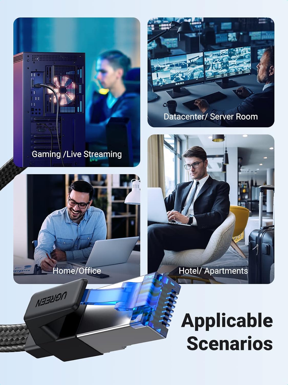 - UGREEN Ethernet Cable 5M, Cat 8 Internet Cable Flat High-Speed 40Gbps 2000Mhz Network Cable, Gigabit Braided RJ45 LAN Cable Patch Cord Compatible for PC/Laptop, PS5, Xbox, Modem, Router, Switch, TV