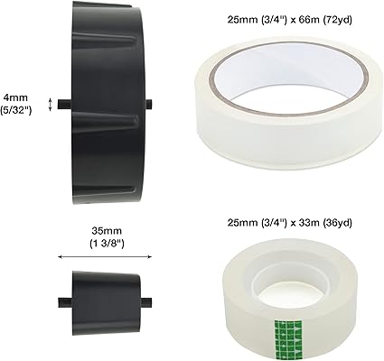 - COMPATIBLE WITH LARGE AND SMALL TAPES - Dual core facility allows use of both large and small tape rolls with 1" or 3" cores, accepts standard 33 m or 66 m tape reels with a 25 mm width