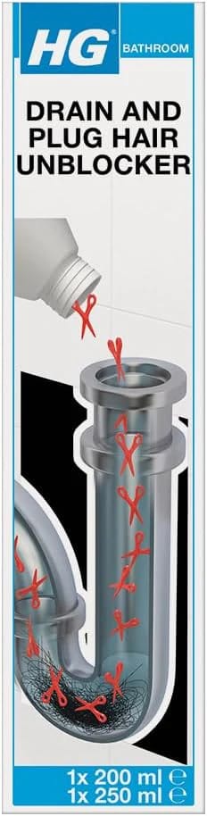 HG Drain and Plug Hair Unblocker, Removes Hair from Shower, Bath, and Sink Plug Holes, Unblocks Pipes & Drains Quickly & Easily - 200 ml + 250 ml