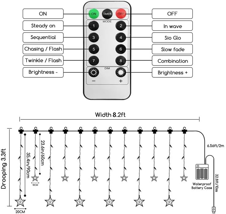 - 【138 Window Curtain String Lights】12 Stars 138 Window Curtain String Lights,Big Star 20cm/Light Line Length 90cm, Small Star 10cm/Light Line Length 60cm,filled with the softest warm colored light to fill the winter night with warmth
