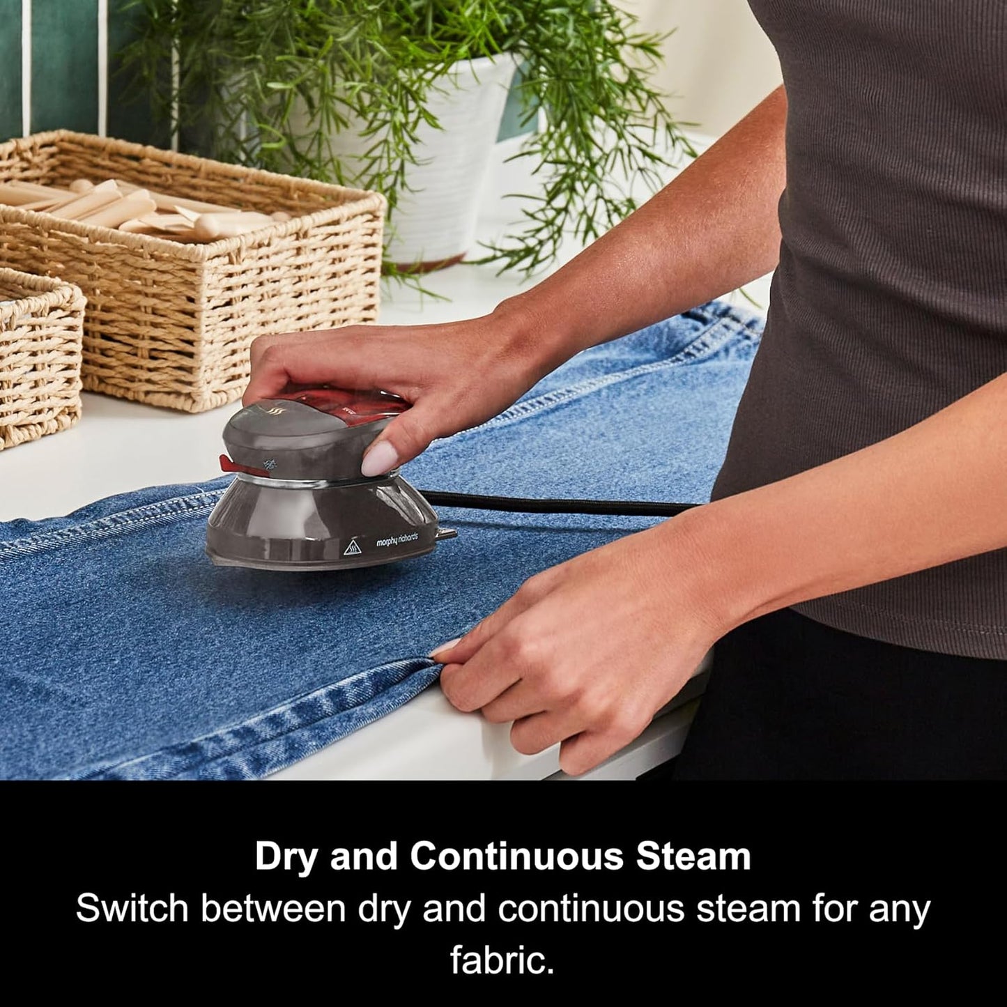 Morphy Richards Compact Travel Iron, Non Stick Soleplate, 5 to 10g Steam Rate, Fast Heat Up, 40ml Water Tank, Dual Voltage 115v to 230v, 400W, Grey, 304000