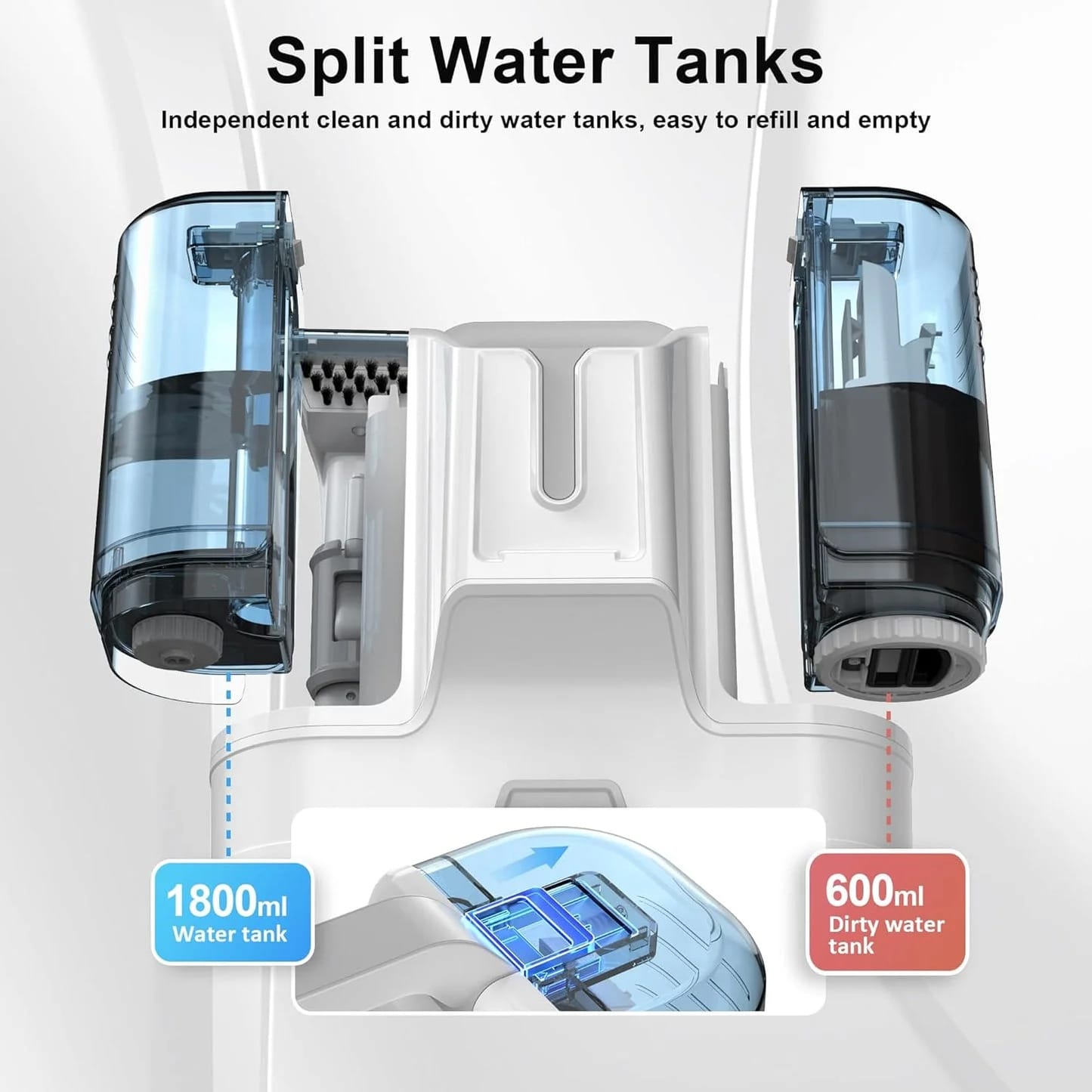 - Dual Water Tank: With a large 1800ml clean water tank and a 600ml dirty water tank, carpet cleaner keeps clean and dirty water separate, ensuring cleaning performance and easy maintenance.