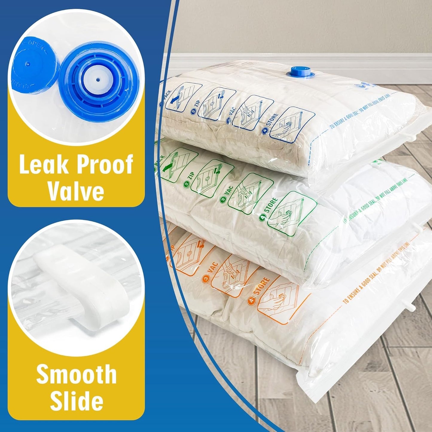 - Secure Vacuum Sealer Bags clothes: these vaccume storage bags have advanced double-zip seal and the triple-seal valve designed to suck every bit of air out and nothing back in.