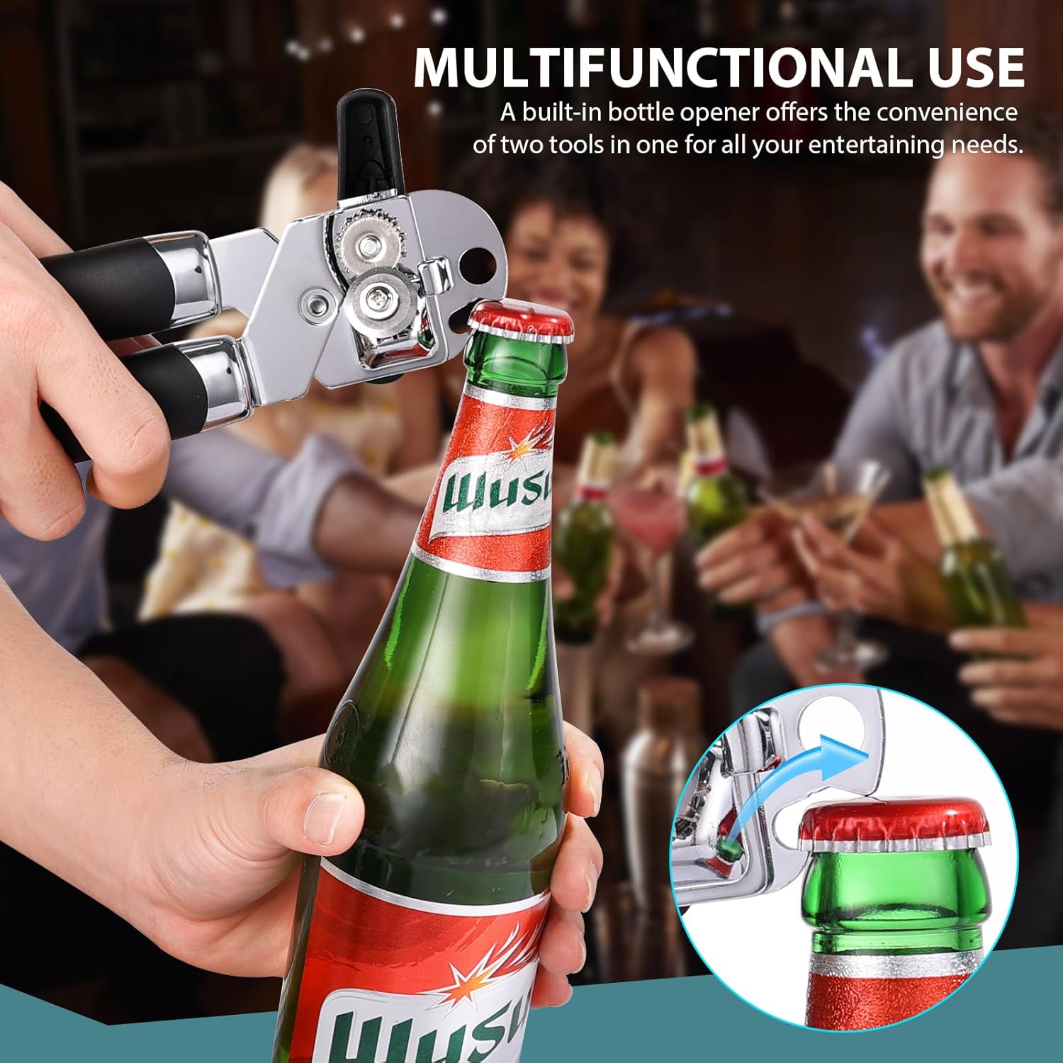 - 【All-in-one Design】 The multifunctional can opener open cans in any sizes and shapes with ease. The built-in beer bottle opener is a great bonus when friends coming to party. A must-have kitchen tool kitchen essentials.