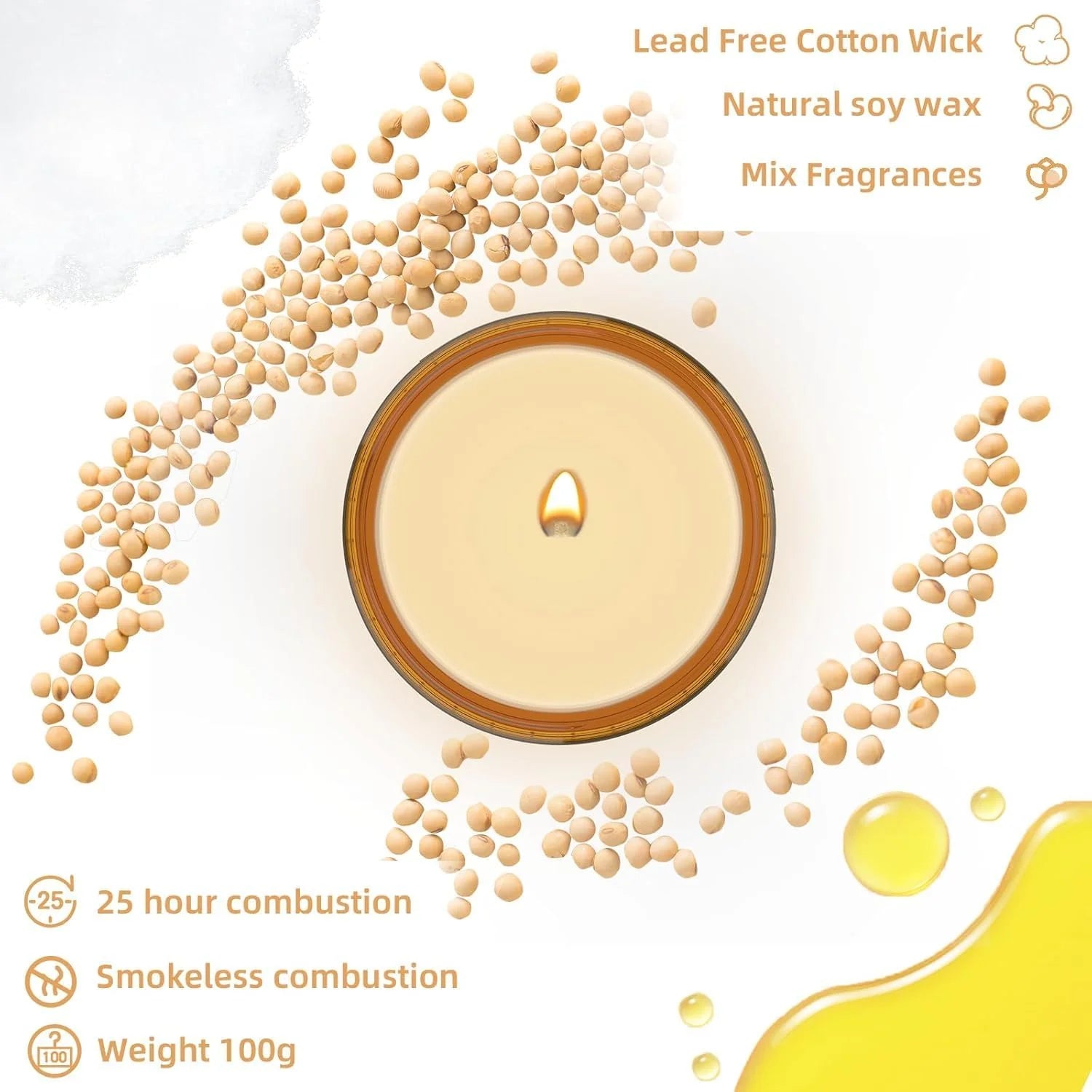- Weight net 100g for each candle, about 25 hours scented burning, avoiding vents and trimming the wick regularly will achieve a longer and more stable burning.