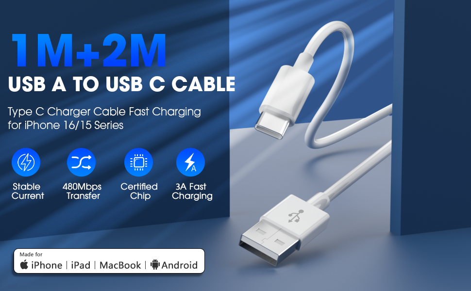 USB C Charger Cable 2 Pack 1M+2M USB to USBC Cable