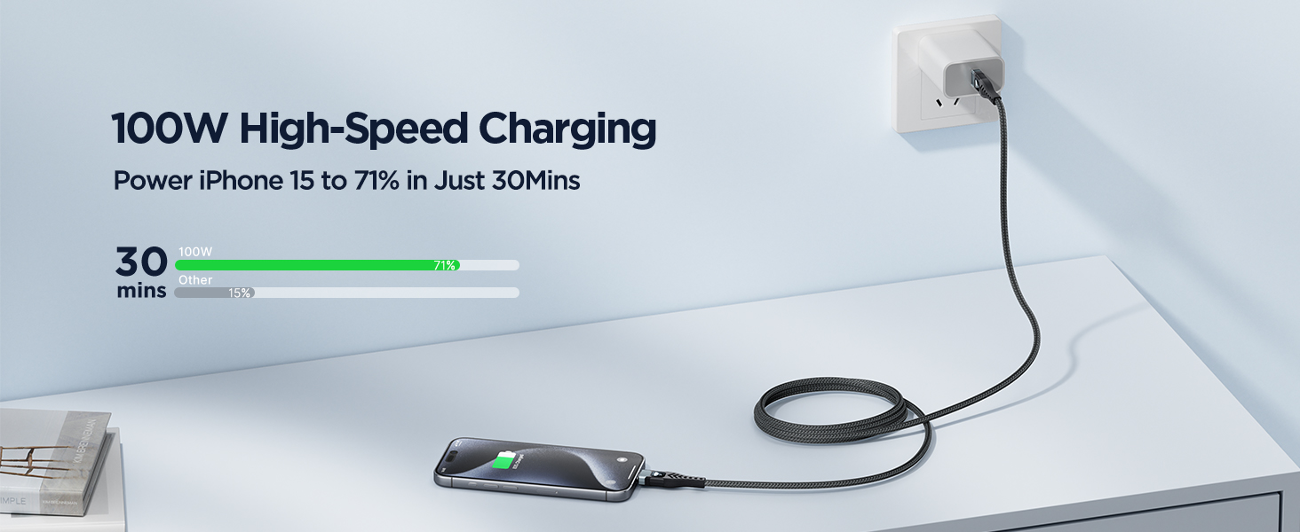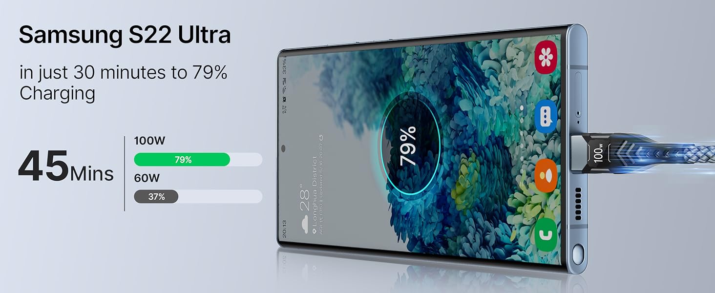 ● Aioneus USB C to C cable supports fast charging up to 100W with the original plug or with the fast charging function plug.