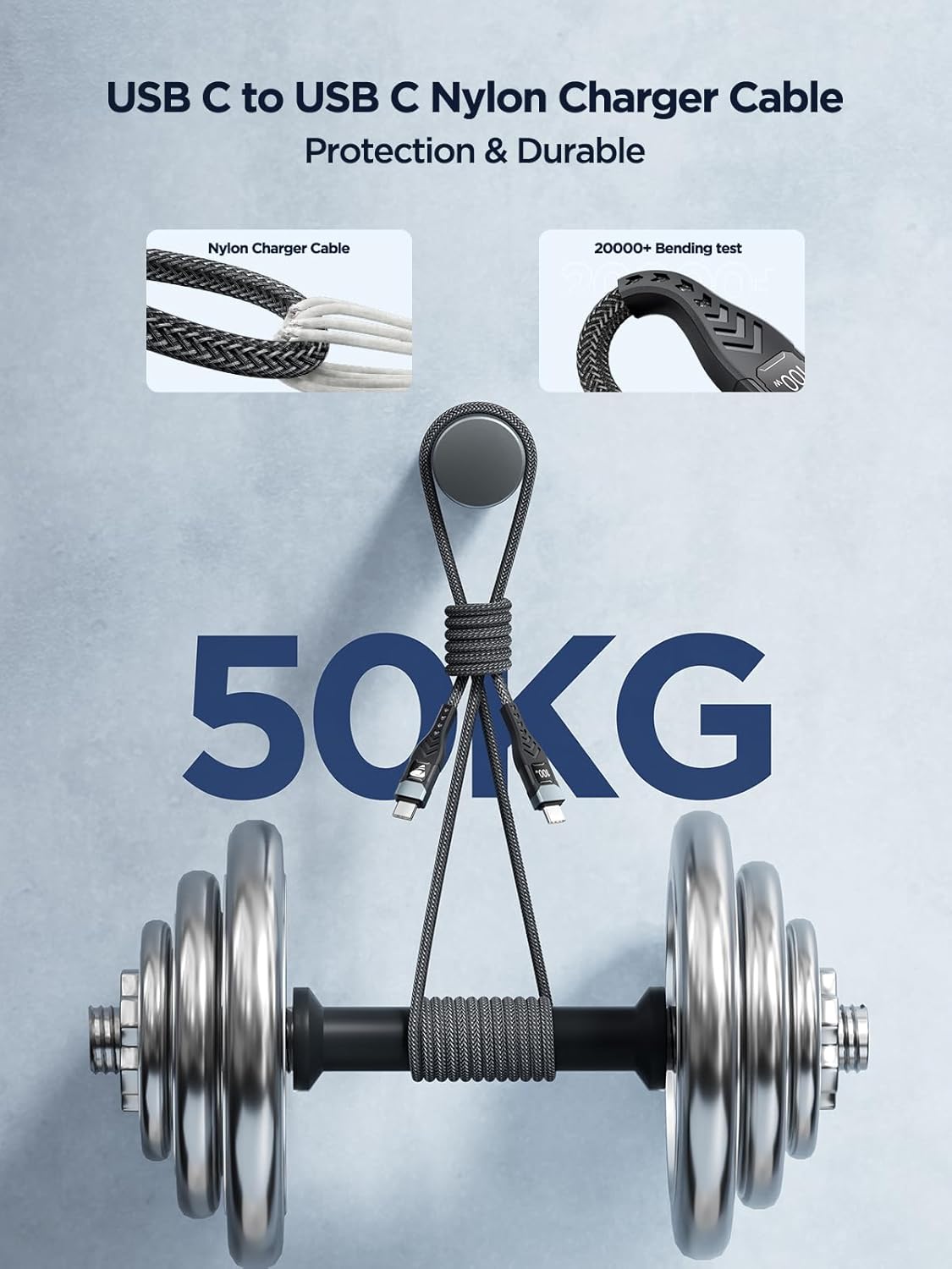 ● The nylon braided PD C to C charger cable is more durable, and this material has passed 50000+ high strength bending test, it is easy to bend, so greatly increasing its service life. The laser welding technology is used at the interface to make it more firm, won't break easily.
